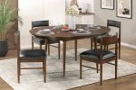 5pc Classic Luxury Dining Set Table with Self-Storing Extension Leaf and 4 Black Leather Upholstered Chairs Cherry Finish Dining Kitchen Wooden Furnit