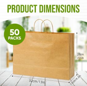 50pcs Kraft Paper Bag With Handle, Kraft-Color Takeaway Bag, Recycled Paper Shopping Bag, Portable Gift Packaging Bag