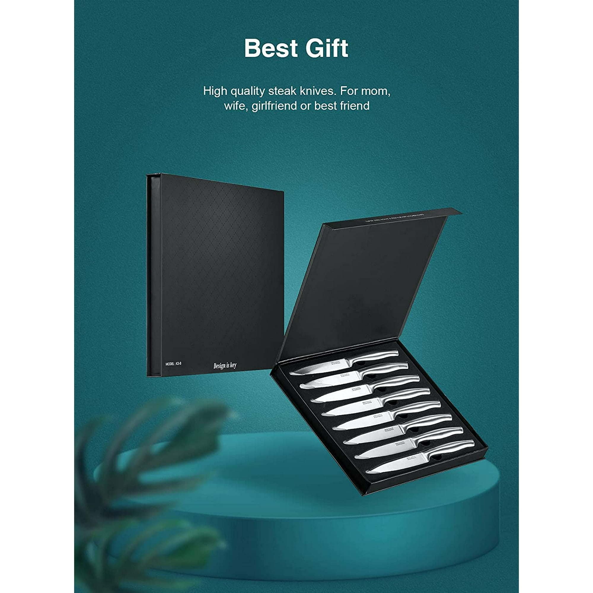Steak Knives, Steak Knives Set of 8, Premium Stainless Steel Steak Knife, Silver Kitchen Steak Knife Set, Super Sharp Serrated Steak Knife with Gift Box. 100% full stainless steel material. Beautiful to look at, classic design. Comfortable in the hand. As high-performing as knives six times their price.