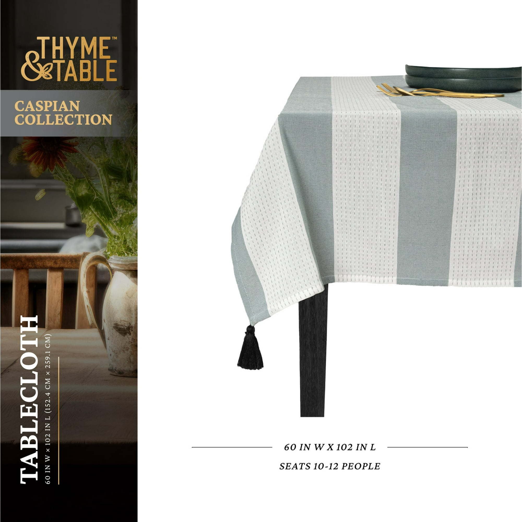 Thyme & Table 102" Tablecloth, Green Dash Thyme & Table 102" Tablecloth, Green Dash Thyme & Table 102" Tablecloth, Green Dash