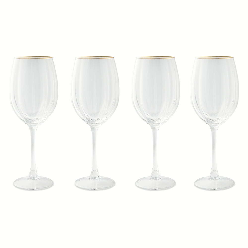 Thyme & Table 4-Piece Scalloped Wine Glass Set with Gold Rim
