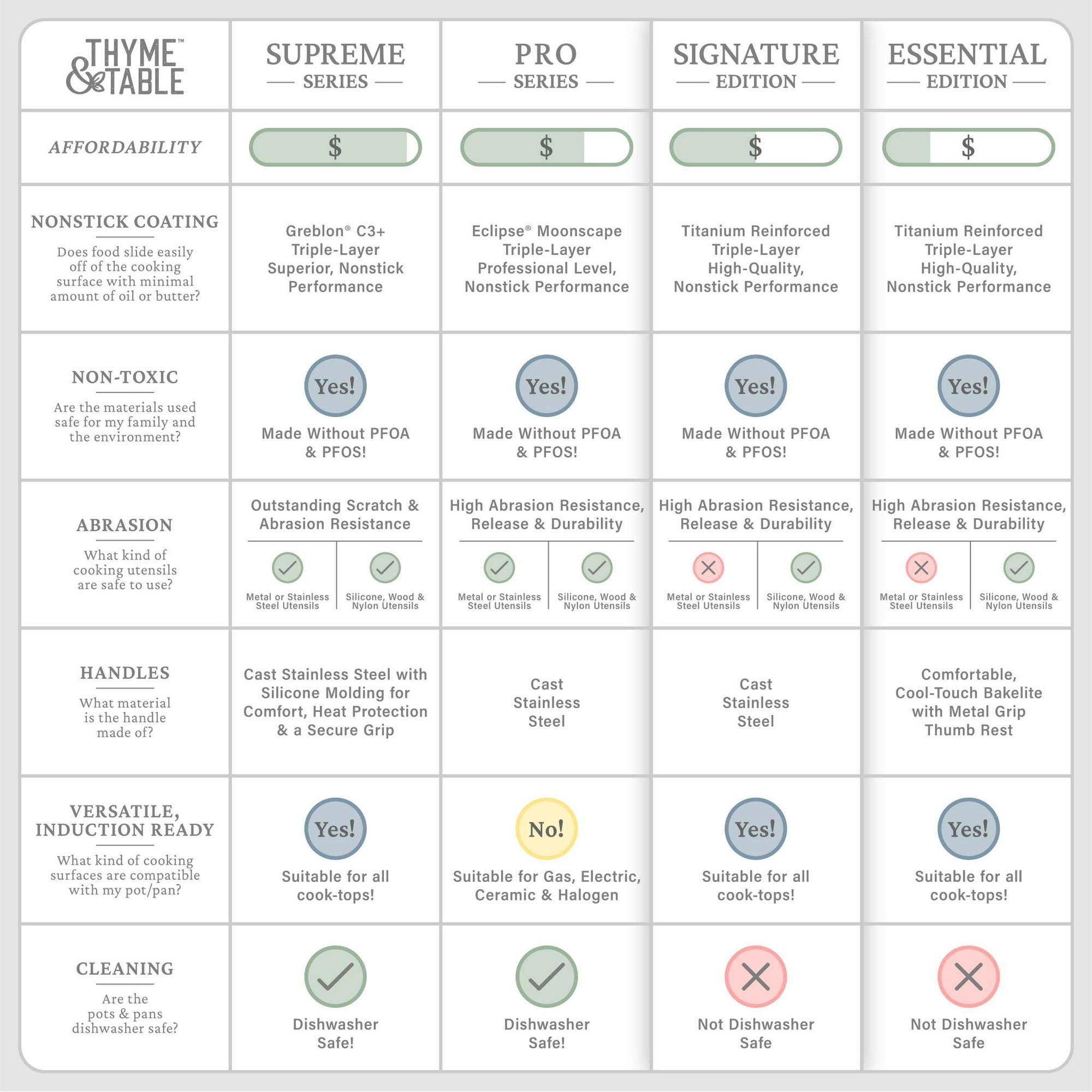 ABOUT THYME & TABLE Thyme & Table is a unique collection of kitchen essentials curated for recipe gurus and enthusiastic foodies who crave bold style and unmatched quality. We have crafted a selection of kitchenware that will transform any kitchen into your personal cooking oasis. Explore all that Thyme & Table has to offer from cookware to storage necessities and cleaning basics and find the reliable and eye-catching products that compliment your colorful lifestyle.