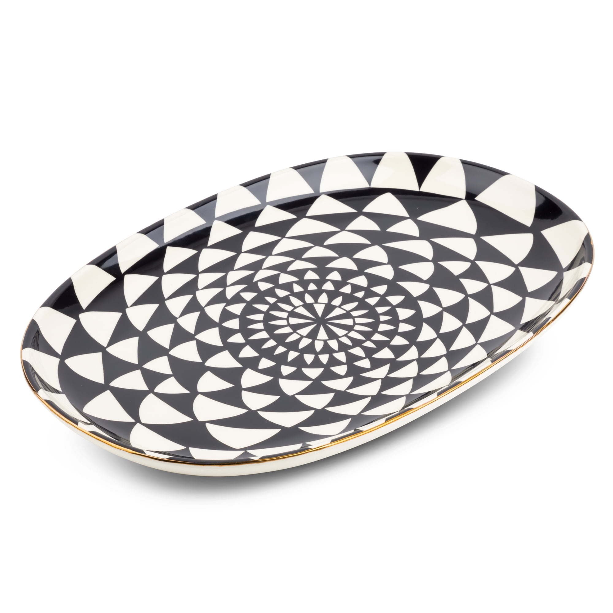 Thyme & Table Stoneware Oval Serve Platter, Medallion is a must-have addition to your serving essentials. Sleek and modern design that effortlessly complements any table setting or occasion. Built to withstand the demands of frequent use. Its sturdy construction ensures long-lasting durability, allowing you to enjoy its beauty and functionality for years to come. With its generous size, the serve platter offers plenty of room to accommodate a variety of foods. For product's longevity, please hand wash with a soft sponge and dish soap.